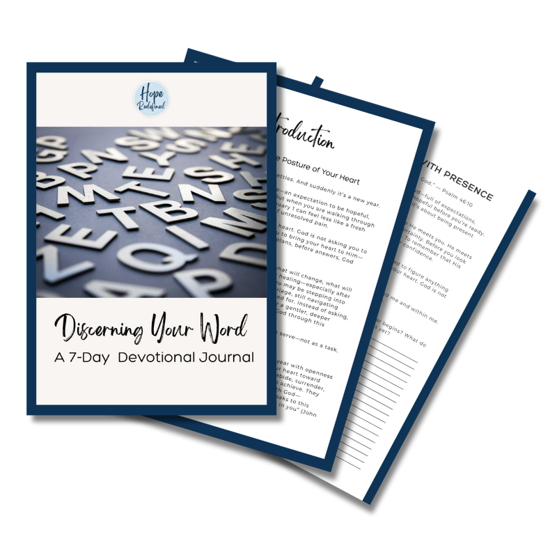 Discerning Your Word is a gentle, Christ-centered devotional journal created for women entering a new year carrying heartbreak, uncertainty, or deep transition. If resolutions feel overwhelming and clarity feels far away, this 7-day guided journey invites you to slow down and listen for the posture God is inviting your heart into.